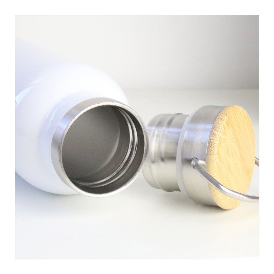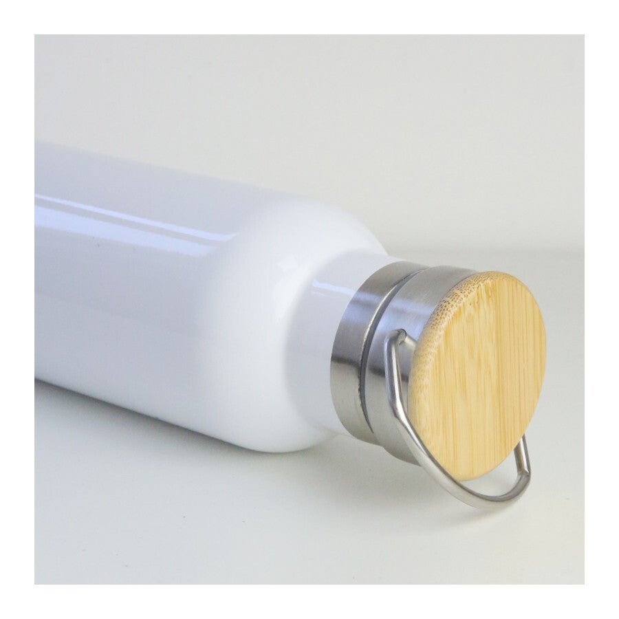 Borraccia Termica ACCIAIO Doppia Parete Tappo in Legno 600 ml. H 25 cm. Ø 7,2 cm.