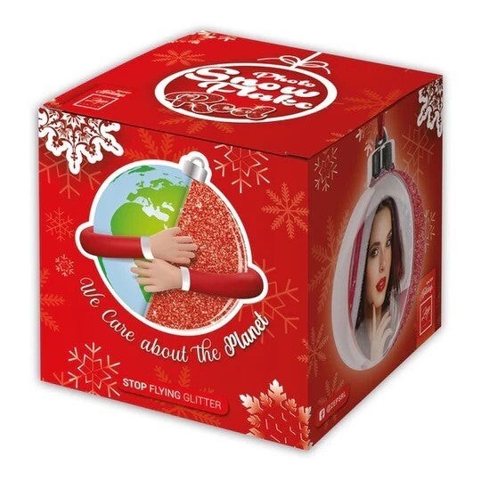 Zep Photo Snow Flake RED, palla di natale con foto, in plastica metà di colore rosa con decoro glitter e metà trasparente, nuovo sistema glitter stop per evitare che i brillantini si disperdano, personalizzabile con foto, da appendere, idea regalo originale, addobbo o decorazione natalizia, regalo personalizzato.