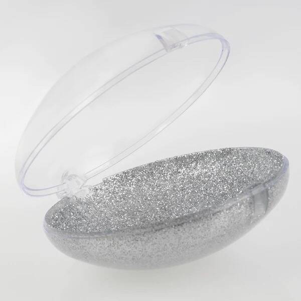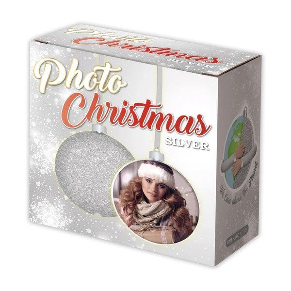 Photo Christmas Silver, palla di natale effetto piatto con foto, in plastica metà di colore argento con decoro a rilievo e metà trasparente, nuovo sistema glitter stop per evitare che i brillantini si disperdano, personalizzabile con foto, da appendere, idea regalo originale, addobbo o decorazione natalizia, regalo personalizzato.