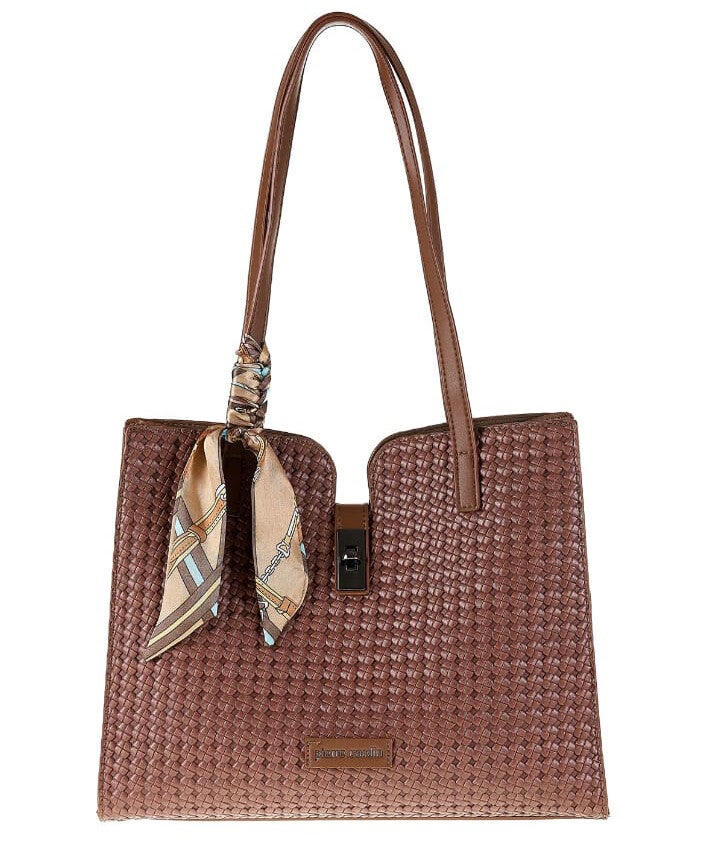 BORSA A SPALLA PIERRE CARDIN, IN ECOPELLE EFFETTO INTRECCIATO CON FOULARD DECORATIVO.